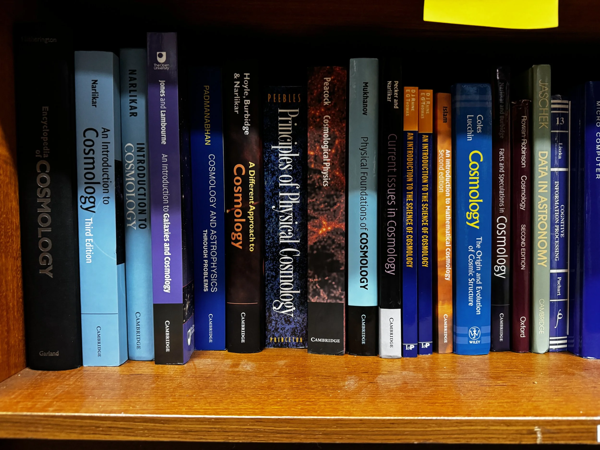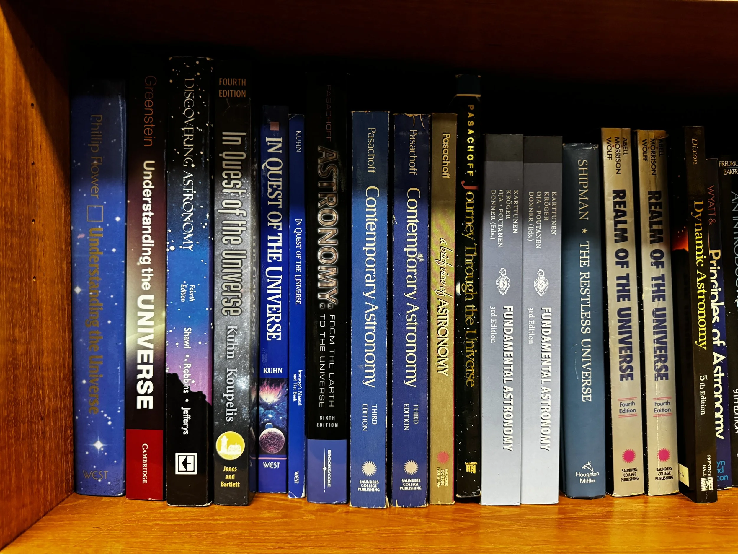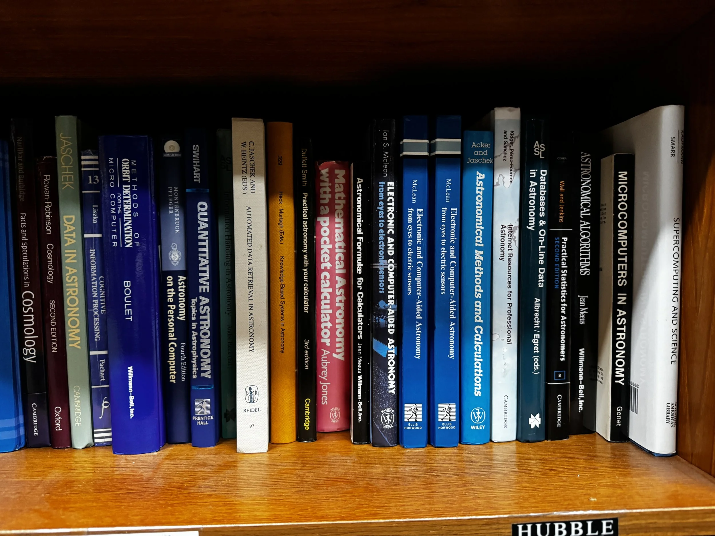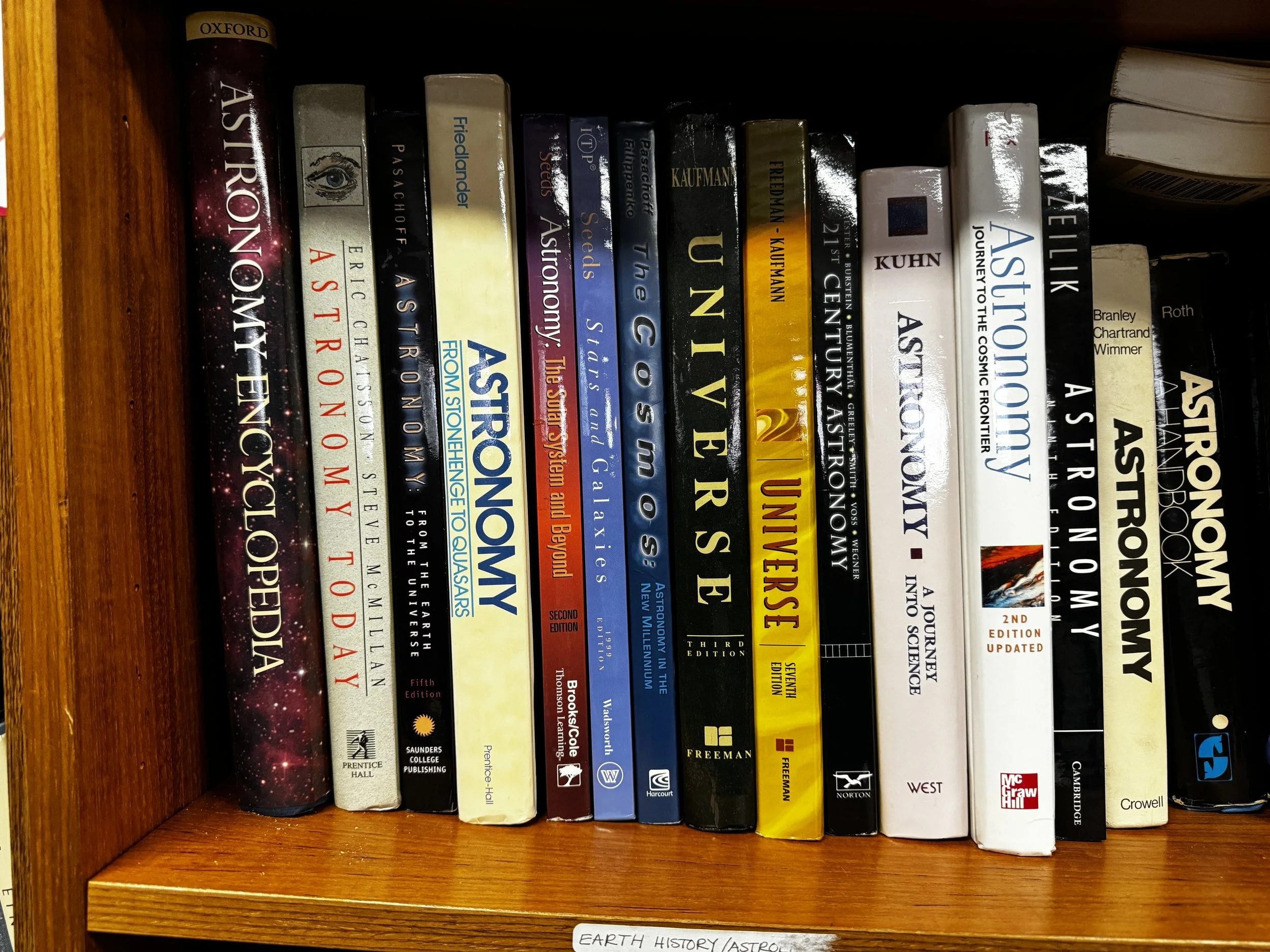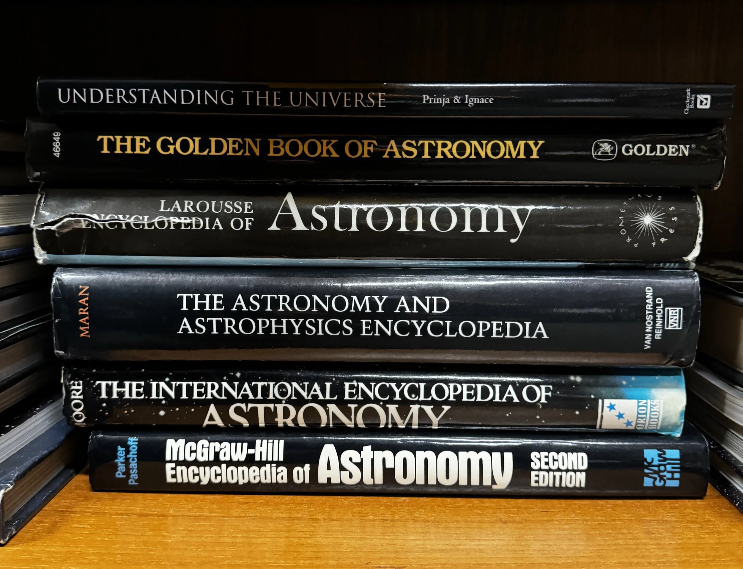Bookcase G includes: educational texts for science, science teachers, intro astronomy, intro physics, cosmology, and math.