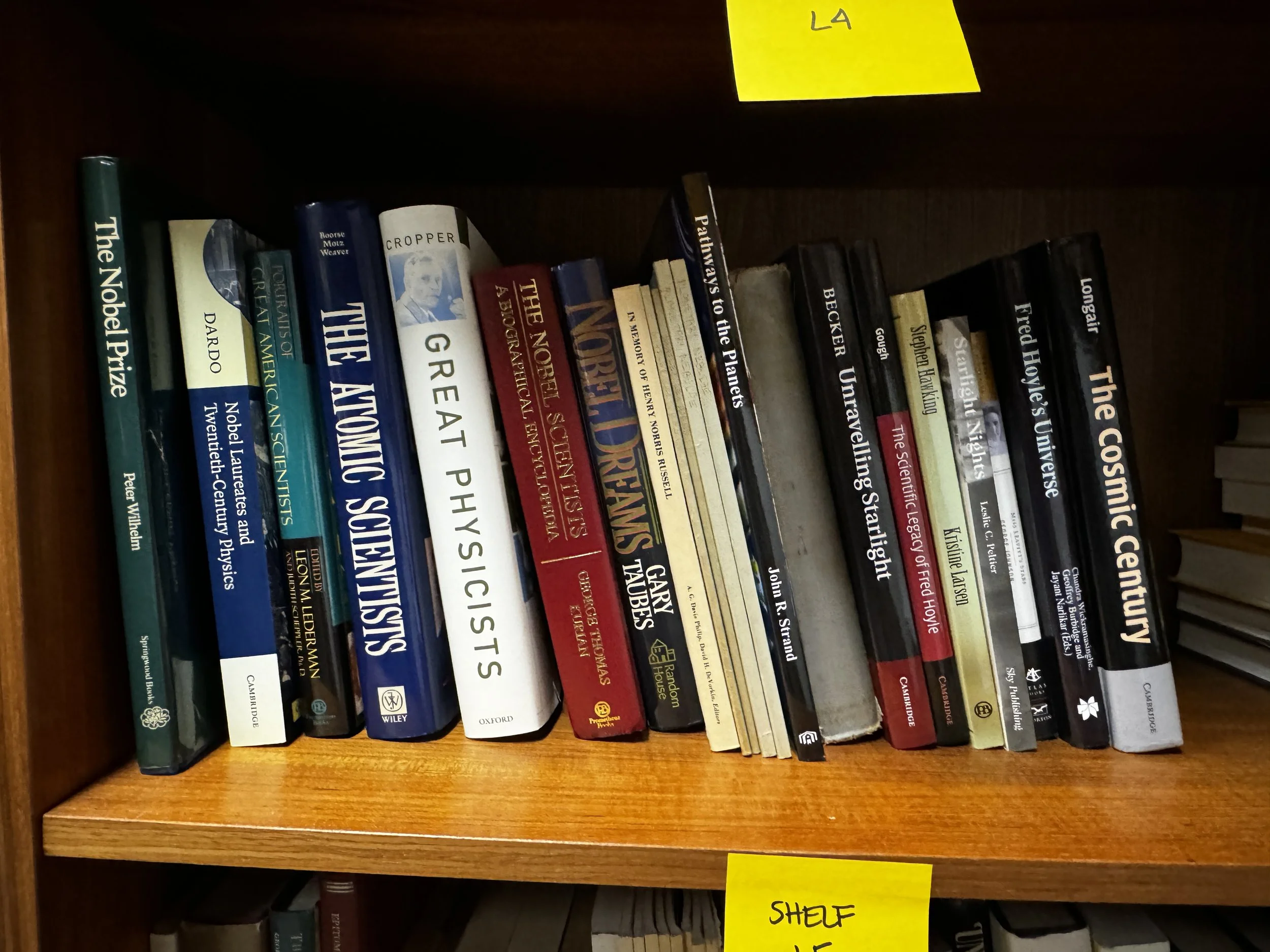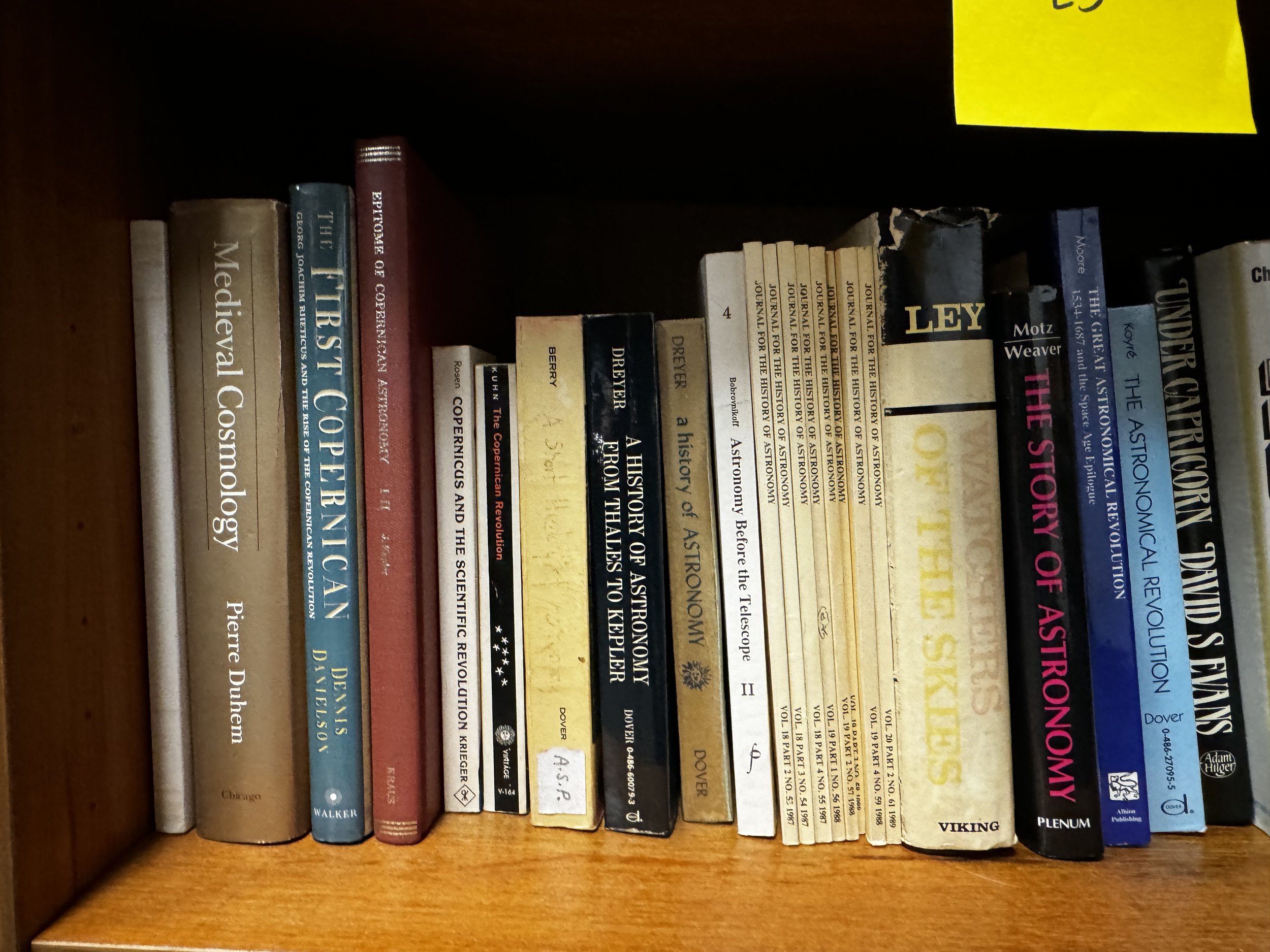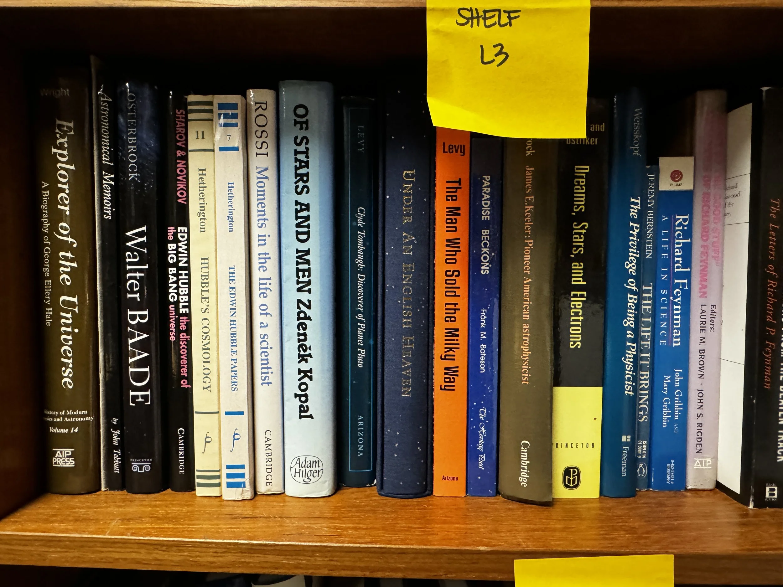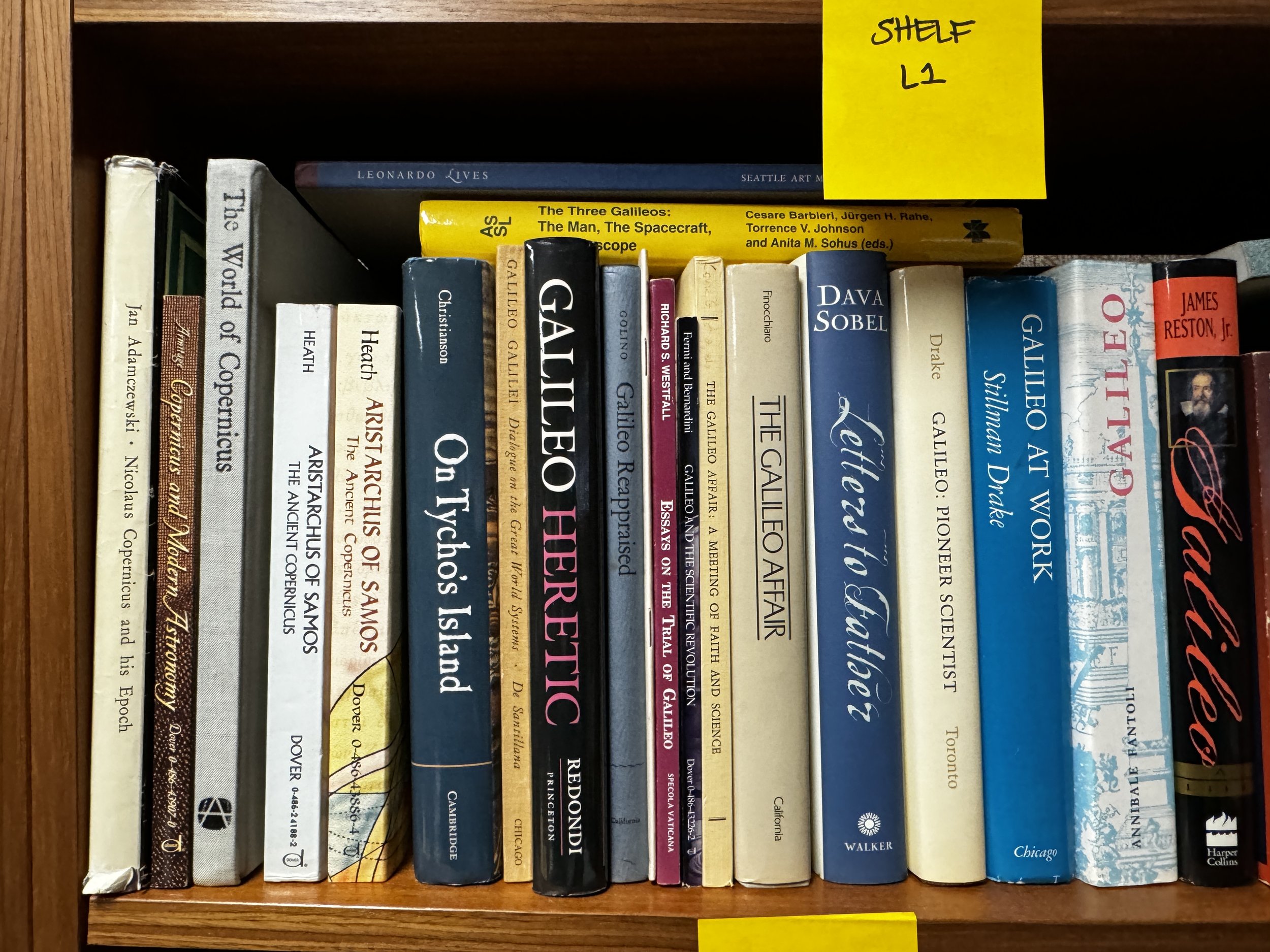 Bookcase L includes: biographies, women in science, and history of astronomy.