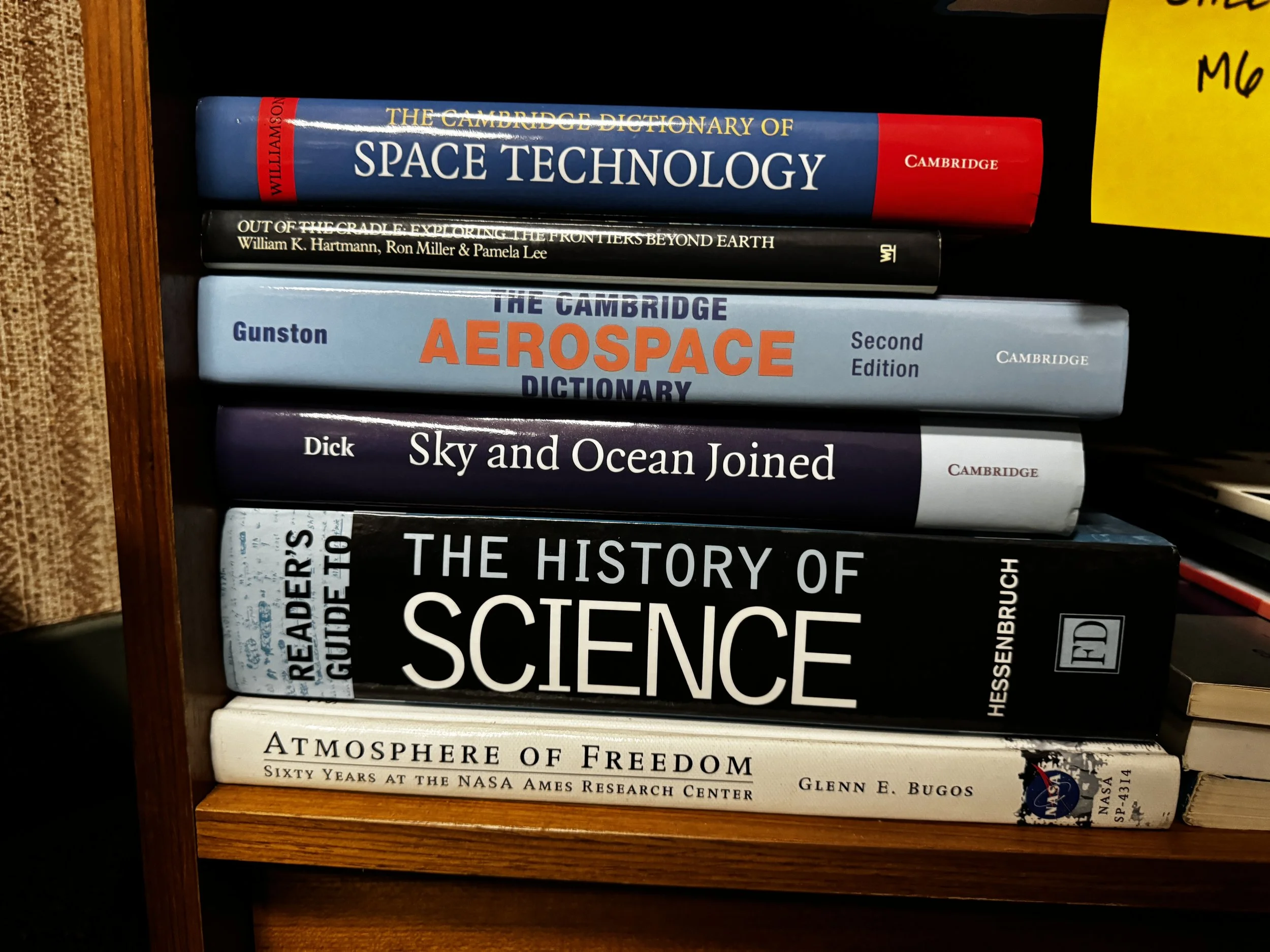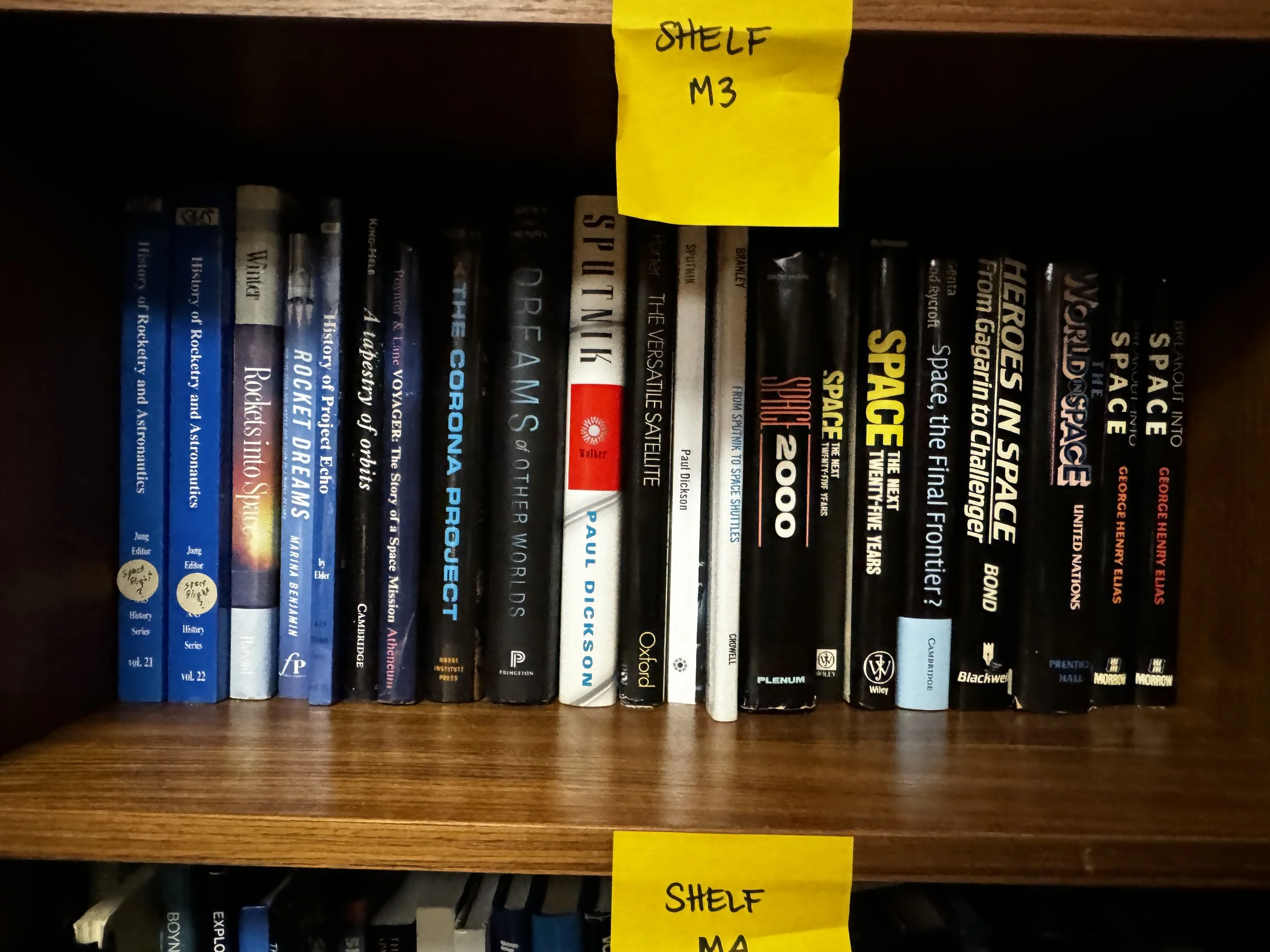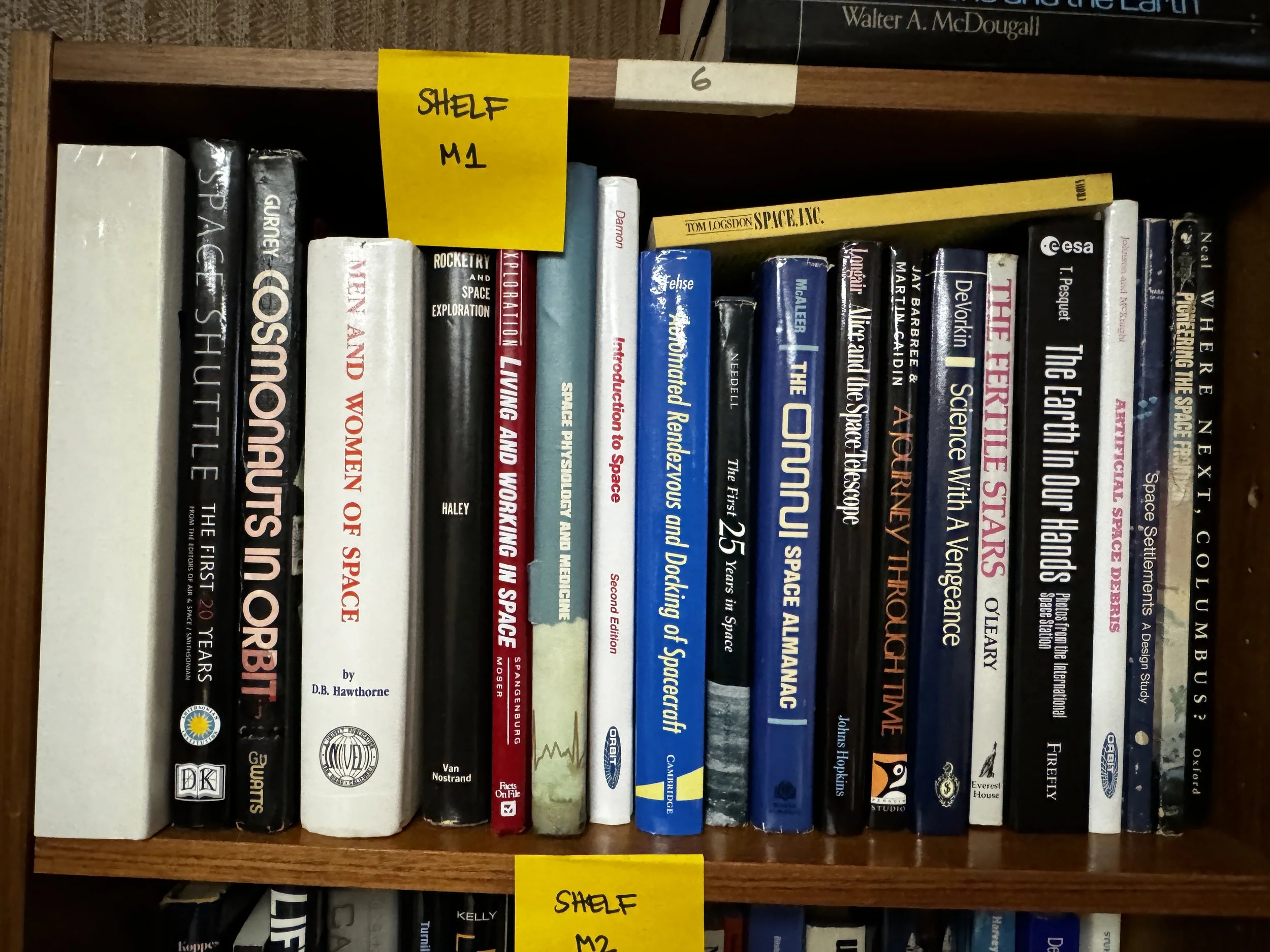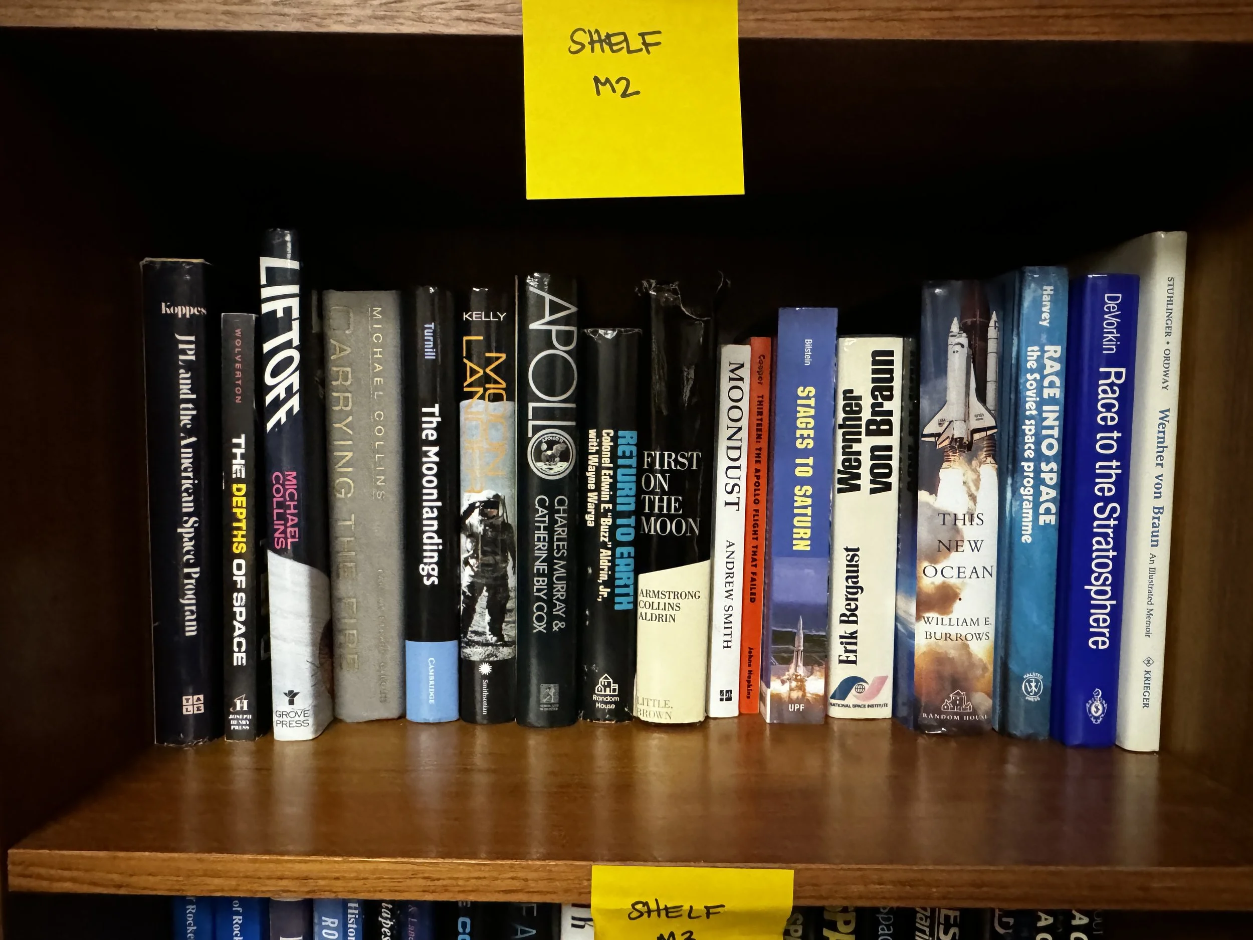 Bookcase M includes: anything to do with human and robotic space exploration, some aviation topics as well.