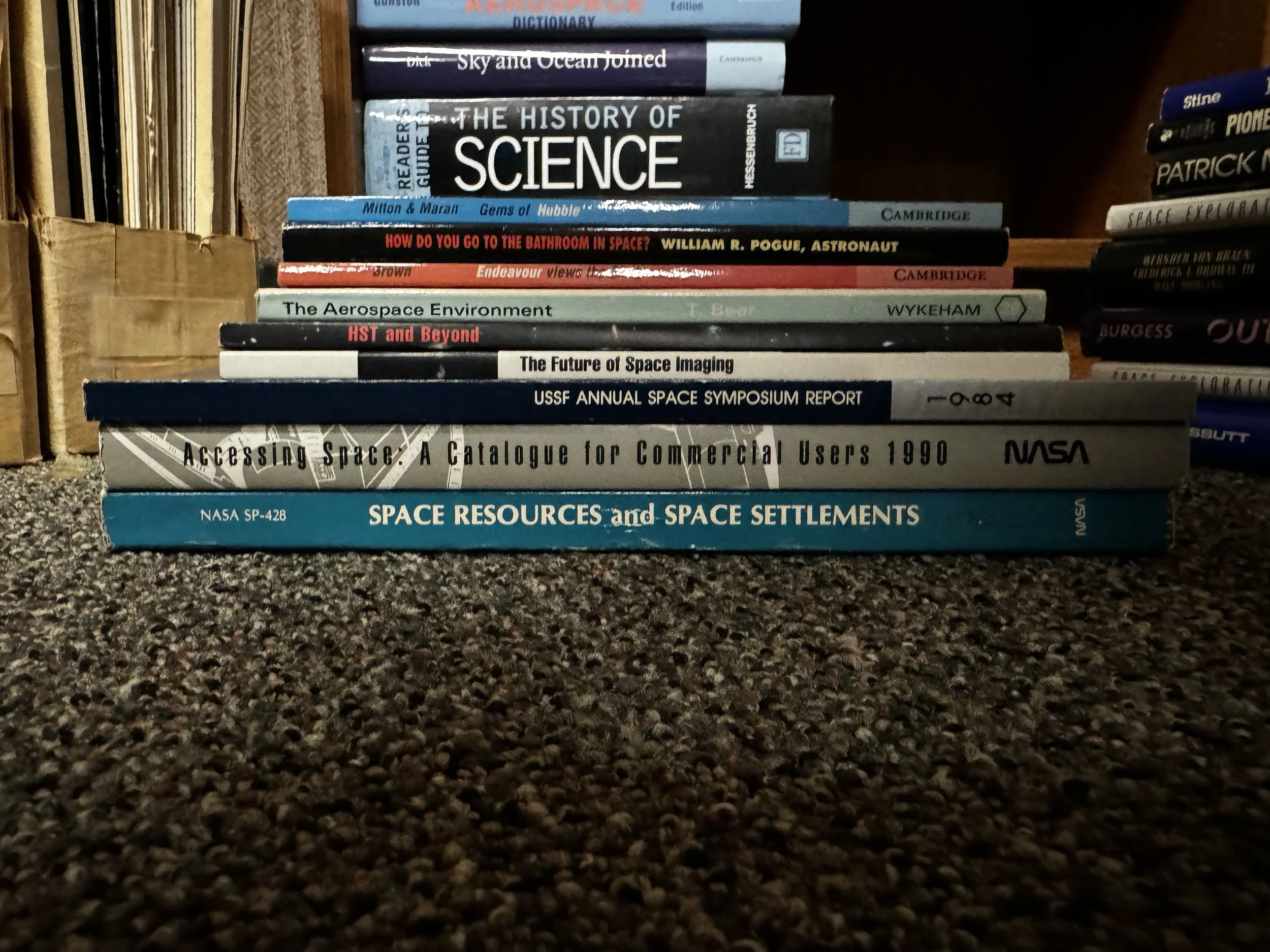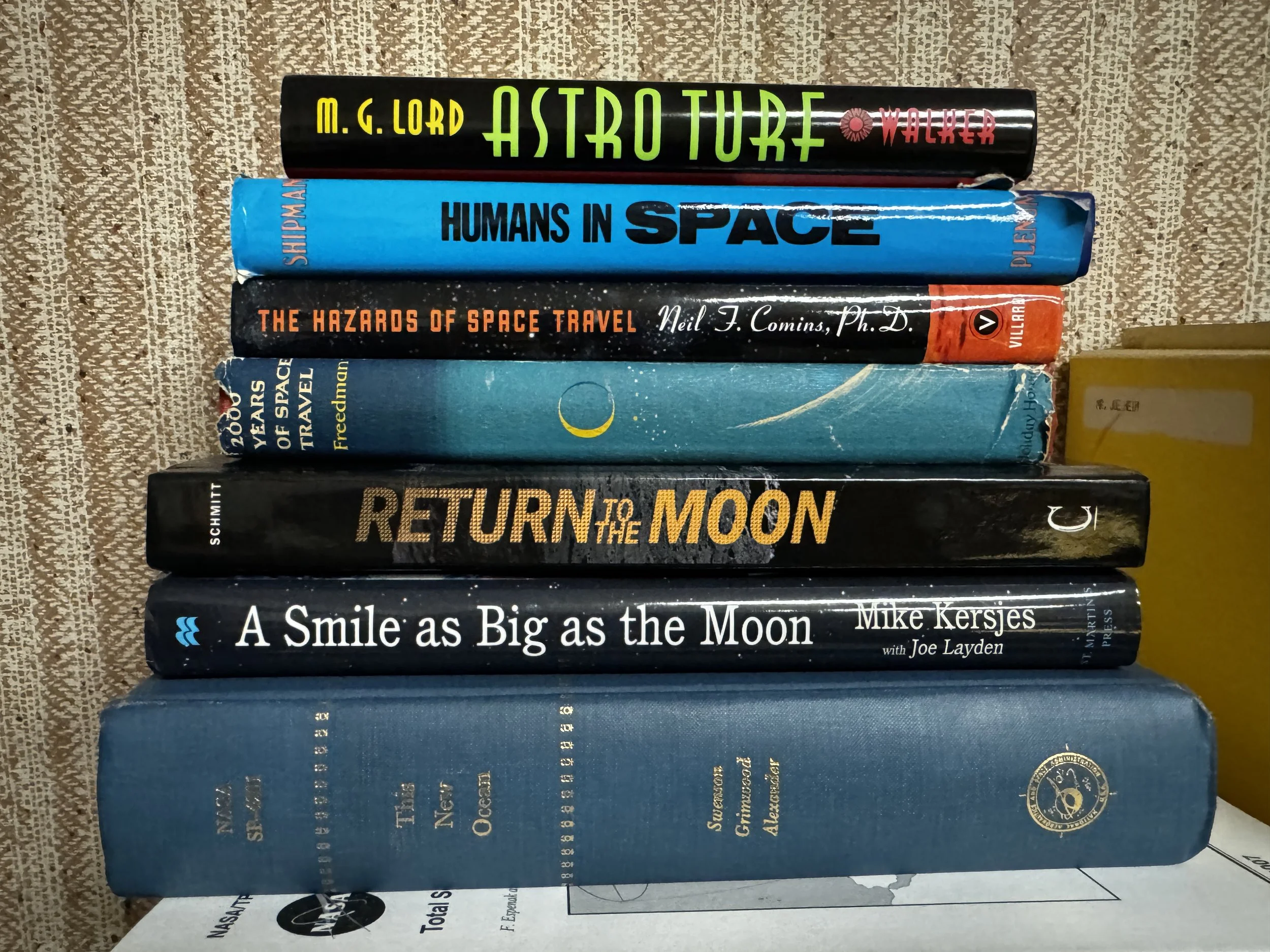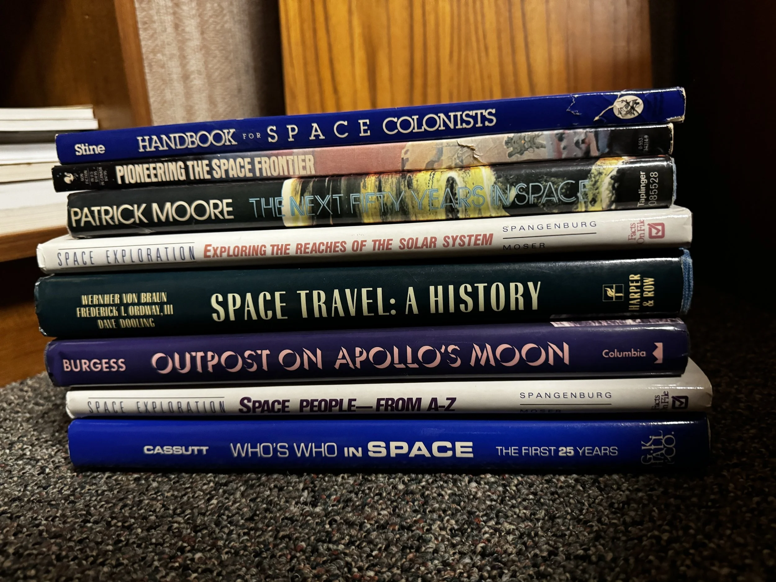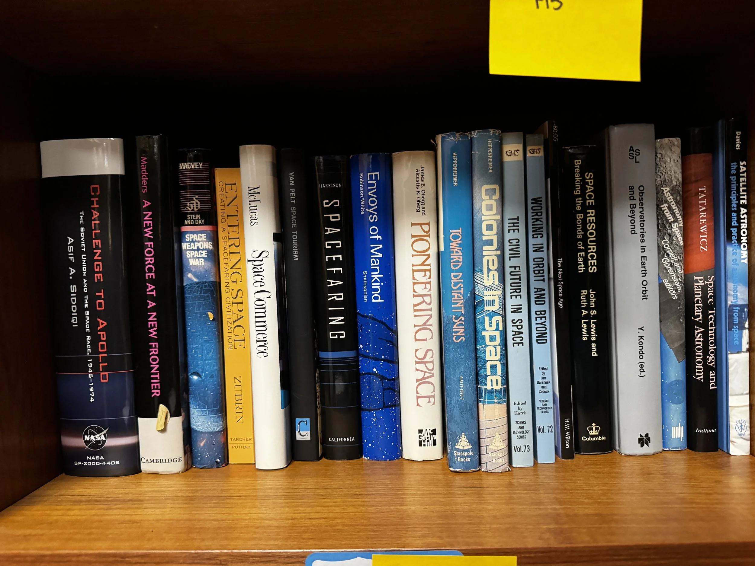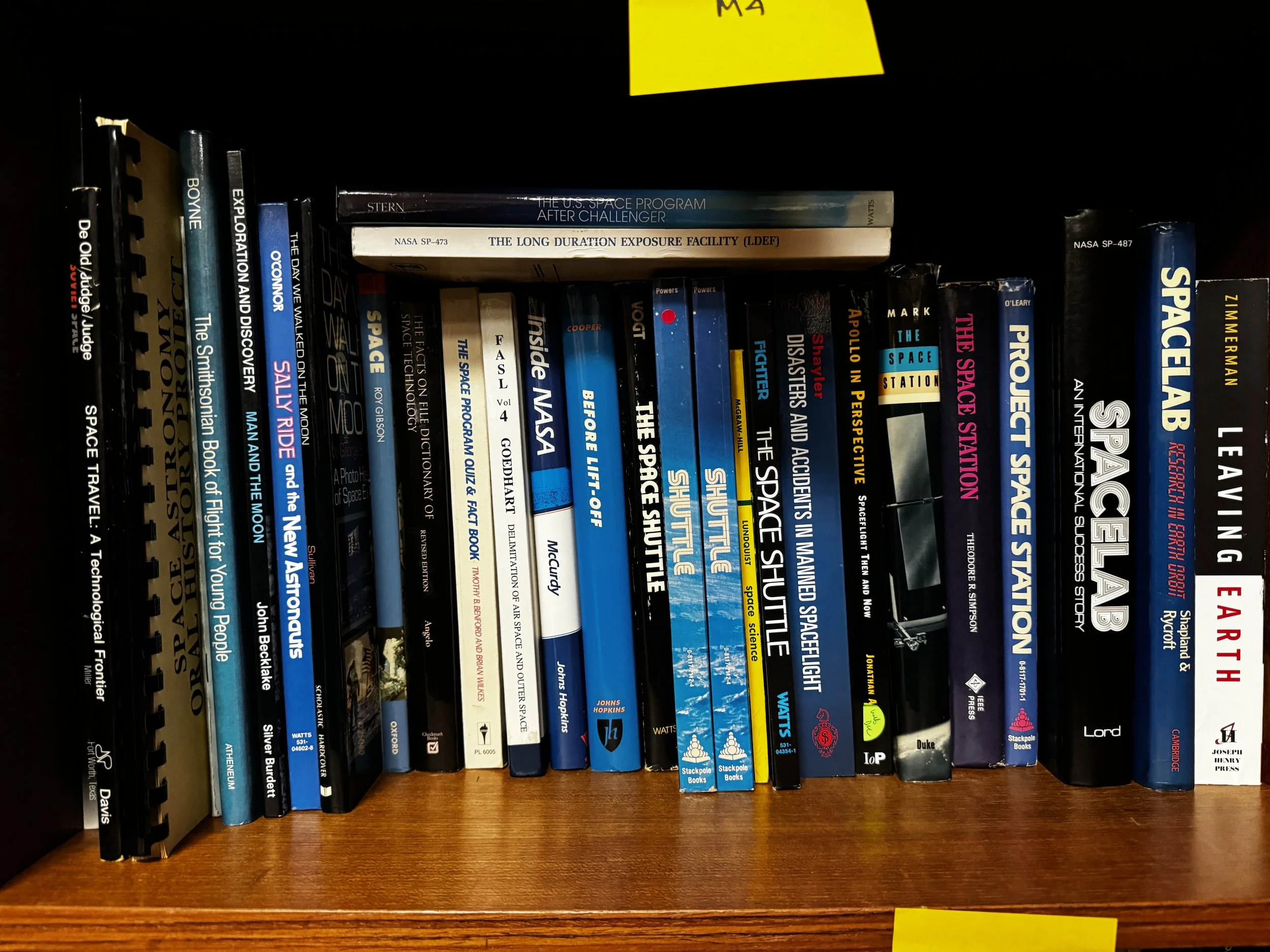 Bookcase M includes: anything to do with human and robotic space exploration, some aviation topics as well.