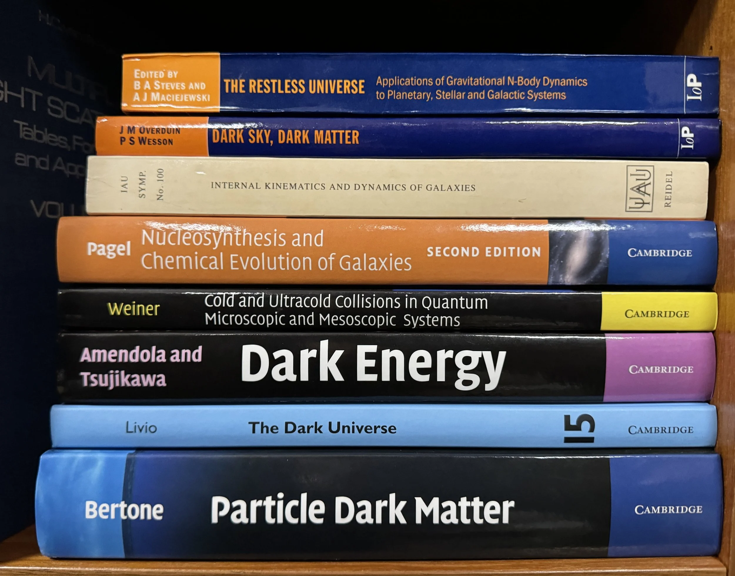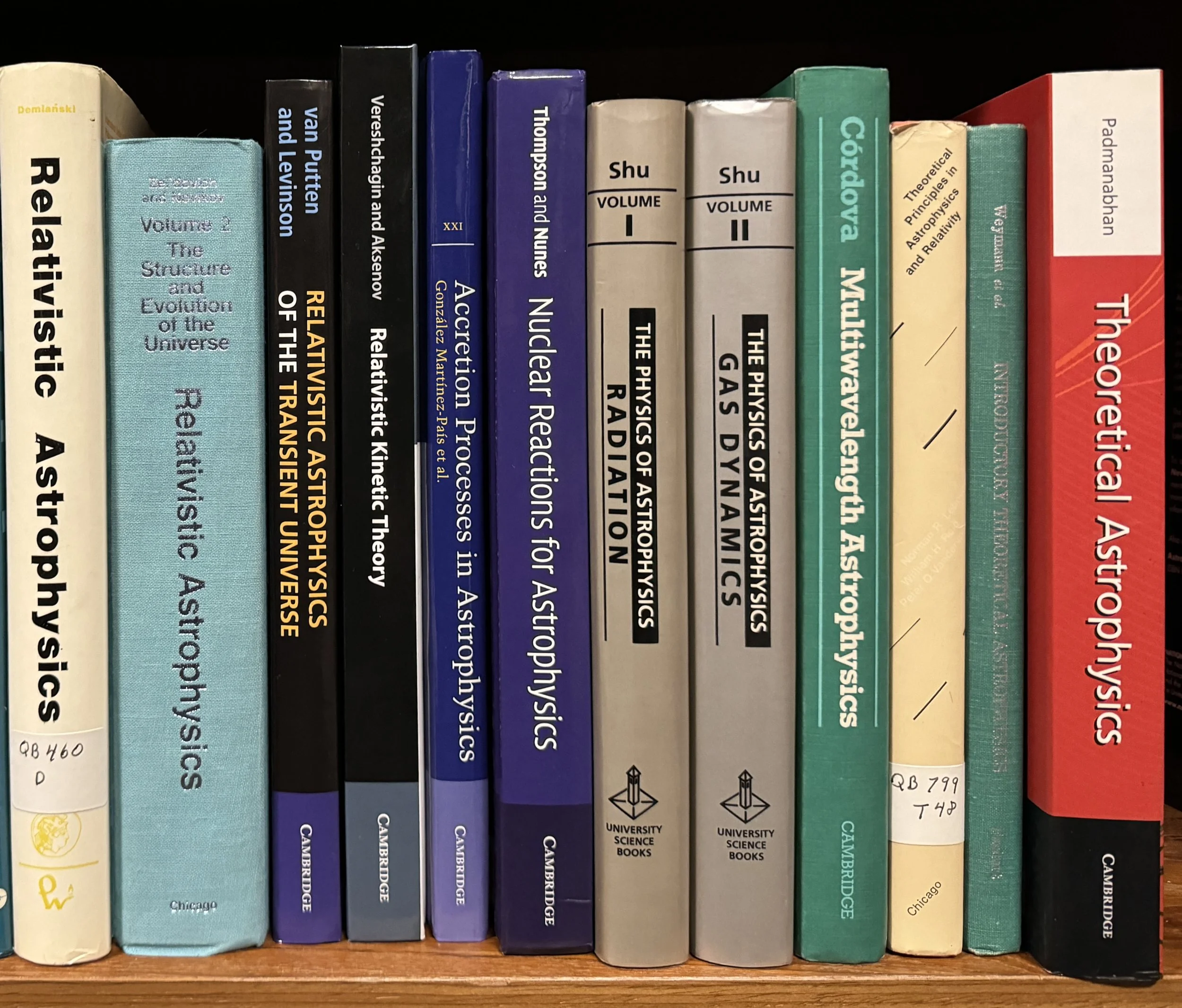 Bookcase S includes: graduate level texts on stars, stellar atmospheres, particle physics, and astrophysics.